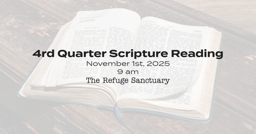 Please join us on Saturday, November 1, 2025 at 9 am as we continue reading through the gospels aloud together in the sanctuary.