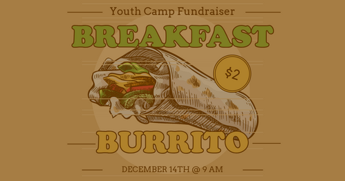 The Refuge Youth will have breakfast burritos available for purchase on Sunday, December 14th at 9AM. They will be $2 each, additional donations are welcome. The funds raised will be used towards the Summer Youth Camp in 2026.