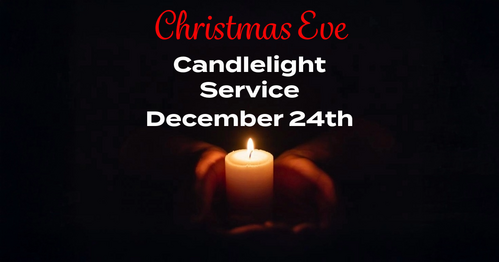 Our annual Christmas Eve Candlelight Service will be held on Wednesday, December 24th from 6 to 7 PM in the sanctuary.