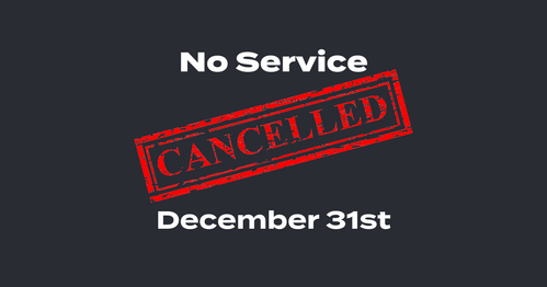We will not have regularly schedule services on Wednesday, December 31, 2025.